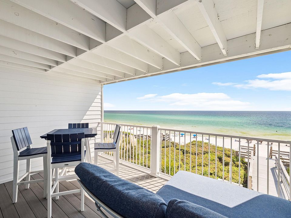 Perched on the second floor of Sea Mist, an intimate 12-unit condominium, this one-bedroom retreat offers breathtaking views of the Gulf of Mexico and direct access to the sugar-white sands of 30A. Crisp, clean, and welcoming, this unit is thoughtfully designed to maximize comfort and coastal charm.Inside, the residence features a king bedroom, hall bunks, and a full bath to accommodate family and guests. The kitchen is fully equipped with modern appliances, while a private balcony invites you to enjoy morning coffee or sunset cocktails against a backdrop of endless emerald waters. A breakfast table offers easy seating indoors, and two grilling areas on the lawn create the perfect place to gather as the sun dips below the horizon.The Sea Mist community has recently undergone an expansive restoration, with all assessments paid in full and building inspections completed. Owners enjoy a private gulf-front beach and an unbeatable location between Camp Creek Lake and Alys Beach. Just a mile from the Big Chill and a short bike ride to Alys and Rosemary Beaches, this condo puts the best of Scenic 30A within easy reach.