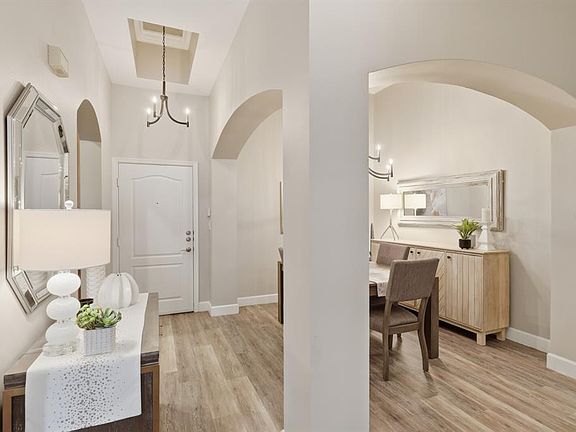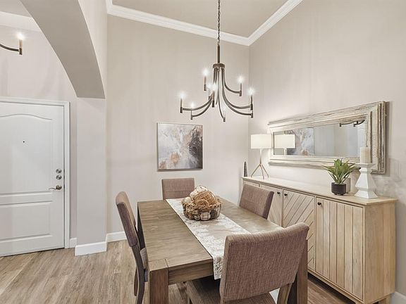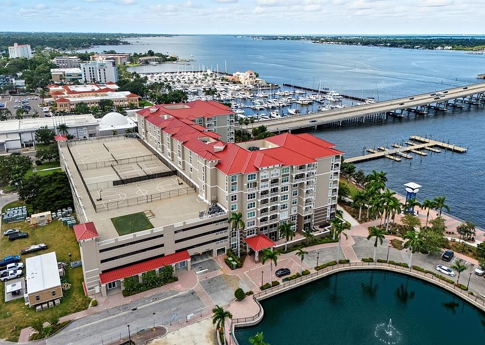 Discover refined living and an unbeatable location in this spacious, ground floor 2-bedroom, 1-bath condo located in the sought-after River Dance community, perfectly positioned along the scenic Bradenton Riverwalk overlooking the Manatee River. As an added bonus, the Gulf Island Ferry to Anna Maria Island departs right in front of the building, providing a scenic and car-free ride to the island’s beautiful beaches! This residence offers 1,236 square feet of thoughtfully designed living space, showcasing soaring ceilings, luxury vinyl plank flooring throughout, and designer light fixtures that enhance its modern, model-like appeal. The kitchen is both stylish and functional, featuring granite countertops, stainless steel appliances, a seating bar, and ample cabinetry. It flows seamlessly into the spacious great room, highlighted by a wall of windows, crown molding, plus a dedicated dining area ideal for gatherings. A screened lanai extends the living space outdoors, offering peaceful views of the lush garden and resort-style pool. The primary bedroom is generously sized with a walk-in closet and a second bedroom is thoughtfully located on the opposite side of the unit, providing privacy for guests or a quiet workspace. The bathroom is centrally located, complete with dual vanities, a walk-in shower, and soaking tub. Adding convenience, the residence includes in-unit laundry, making day-to-day living easy and efficient. River Dance is a resort-style, amenity-rich community designed for an active and social lifestyle. Residents enjoy access to a heated pool and spa with a grilling area, a fifth-floor outdoor deck with tennis and pickleball courts, a basketball court, and a putting green. Indoors, you'll find a fitness center, a movie theater with a serving bar, a community room with a full kitchen and pool table, as well as a business center and conference room. Two fully equipped guest suites are available for overnight visitors. This condo also includes two assigned spaces in the parking garage and a climate-controlled storage cage. Located just minutes from downtown Bradenton’s vibrant shops, restaurants, and cultural attractions including the Manatee Performing Arts Center, the location cannot be beat! Whether you're seeking a full-time residence, a seasonal retreat, or a low-maintenance investment, this exceptional condo offers the perfect combination of luxury, location, and lifestyle.