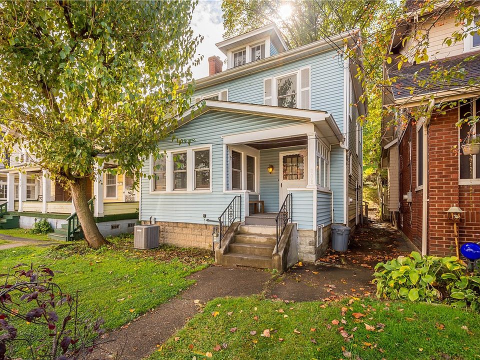 This charming two-story home offers a fantastic location just steps from local shops, restaurants, and everything town living has to offer in Coraopolis. Inside you'll find a welcoming layout featuring hardwood floors, a bright living room warmed by a gas fireplace, and an adjoining front room that makes an ideal office, playroom, or reading nook. The updated kitchen boasts white cabinetry, new butcher block countertops and plenty of space for cooking. Upstairs are three comfortable bedrooms with hardwood floors and a hall bath. Additional highlights include newer windows through much of the home, a new furnace and central a/c installed in 2023, and a rear screened in porch and paver patio for relaxing in the warmer months. The lower level provides great storage along with a built-in workbench for hobbies or projects. There is a space off of the rear alley that could allow for off street parking. 808 5th Ave is a wonderful blend of character, comfort, and convenience.