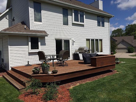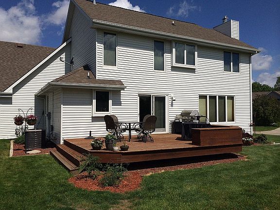 Single-Family 2 story frame house in Huxley Iowa (Ballard School District) sits on a 1 acre 43,560 SF lot (cul-de-sac) in Ashwood Estates Lot 17. The following is a partial list of features and information. Built in 1992 Great family friendly neighborhood (cul-de-sac) Total Living Space 2,400+ First Floor 867 SF Second Floor 859 SF Finished basement with ¾ bath 700 SF Four bathrooms, 2 full, 1 ¾ and 1 ½ Kitchen remodeled 2010, tile heated flooring, new appliances New carpet 2010 2 car main garage with a 3rd stall attached No maintenance steal siding 97% efficient heating/cooling system installed spring 2014 4 hole synthetic putting green Big spacious yard great for kids