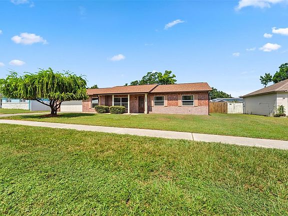 Immaculate and MOVE IN READY! This lovely 3-bedroom, 2 bath, 2 car garage home sits on a large fenced lot and is located with-in walking distance to Brooker Elementary School and Saladino park. The curb appeal of this home catches your eye with large shade tree, hardwood Mahogany front door and brick accents, an extra touch that is hard to find in a Florida home. The large kitchen is open to the dining area and enjoys details such as oak cabinets, pantry with shelving and a window to the backyard allowing the sunshine to flood the space with light. With three bedrooms and two full baths this home has the room and privacy your family is searching for. With laminate and tile flooring throughout, this home is easy to keep clean and great for the family pets. The secondary bedrooms enjoy carpeting for noise reduction. The enclosed screened lanai with air conditioner is a perfect way to enjoy the beautiful outdoor space while still staying cool in the Florida heat. Everyone in the family will love roasting hot dogs and smores around the firepit while watching the stars. Enjoy the gorgeous look of a paved patio and walkway, adding to the beauty of the large backyard. This home as many extras that push it over the top such as a NEW ROOF (2024), NEW A/C and NEW DUCTWORK (2024) NEW WINDOWS & GARAGE DOOR (2024), NEW Septic tank and leach system and new pipes throughout. This home also features well water, a water softener, sprinkler system, floored attic space, work room in the garage and UPDATED bathrooms. This home is located with-in close proximity to shopping, restaurants, medical offices, hospitals and a short distance to all that Tampa Bay has to offer. NO need to worry about extra fees; with this home you have NO HOA or CDD Fees! There is also ample parking for an RV or Boat! This find is one of a kind!