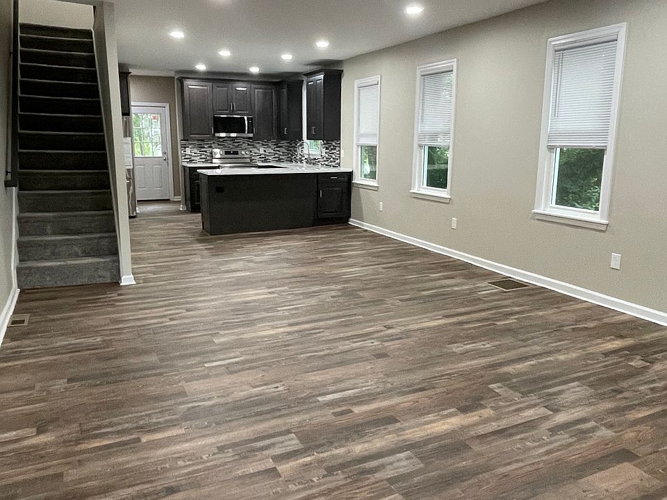 All new kitchenHeating systemBack deckFront porchLarge backyardQuartz countersBathroom fixtures