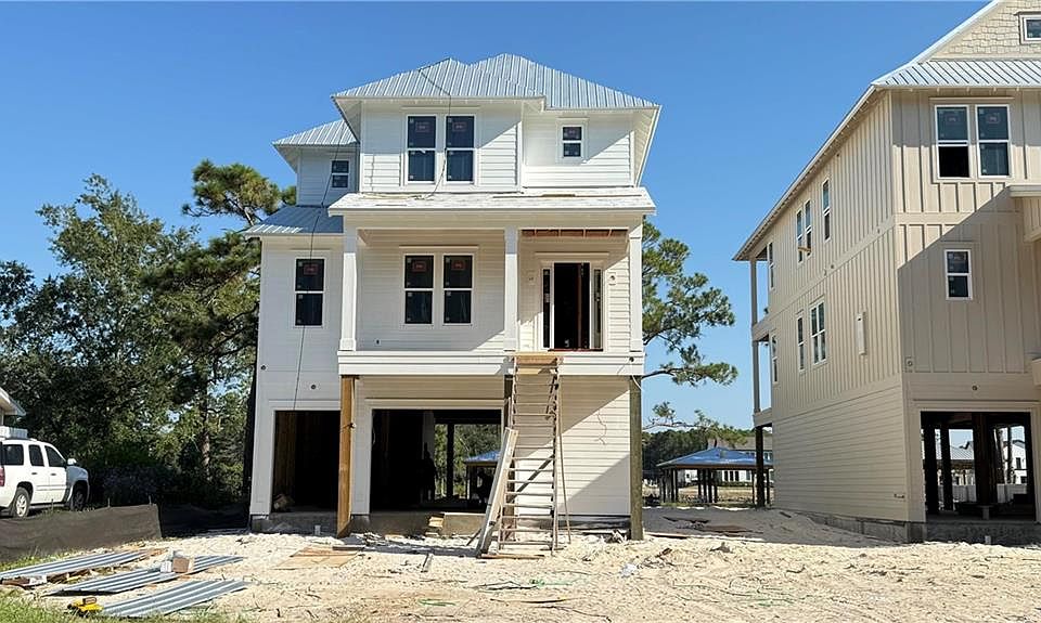 Under construction home on the intracoastal waterway by ARK Builders has you'd want from luxury living on the water and more! Expected completion date is April 2026 (shooting for sooner). Bonus, there is a covered boat dock and lift for your boat up to 30', gunite salt water pool, fenced backyard, elevator, 4 bedrooms, 4 baths, 2982 sq ft. Primary bedroom, bedrooms 2 and 3 as well as laundry are on the 2nd level and bedroom 4, kitchen, dining and great room are on the top level. The primary bedroom has a 10 x 30 deck/balcony overlooking the waterway, ensuite including dual vanities, linen cabinet, water closet and huge walk in closet with built in dressers. Quartz countertops, hardwood flooring with tile in the baths and laundry room, 10' ceilings, 8' doors, both 2nd floor and 3rd decks span the entire waterside of home and are tiled. There is a gas tankless water heater and it is Gold Fortified with impact windows. Loaded with too many upgrades to mention. Parking is under the home and the elevator goes to both upper levels. There is a huge storage room under the home too! Ready for your slice of paradise? Look no further than 808 West Canal Drive! Buyer to verify all information during due diligence. Listing agent is a licensed REALTOR in the state of AL and is a member of the selling entity.