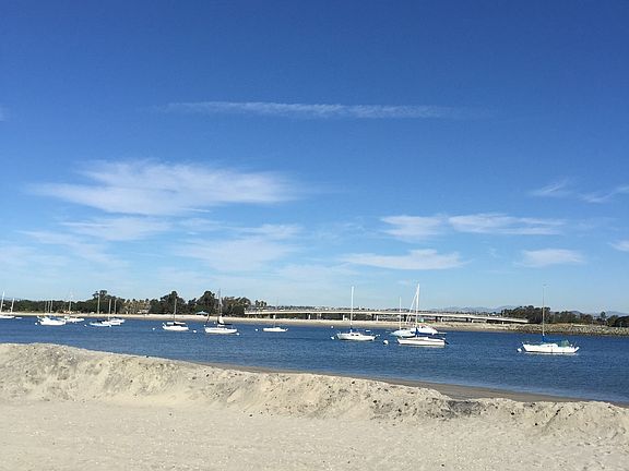 This bright and sunny upstairs 1 bedroom apartment is located in a 3 unit building on a quiet court in South Mission Beach. Only steps to both the bay and ocean, this apartment has new laminate wood floors throughout except for the bedroom which has carpeting under one year old. It has newer windows and blinds, shower doors, toilet and fixtures, as well as ceiling fans and a wall air conditioner with remotes. It has also been freshly painted.There is a one car garage and coin operated laundry in the building. Quiet, long established tenants share the large front patio that has a table with an umbrella and benches. Available