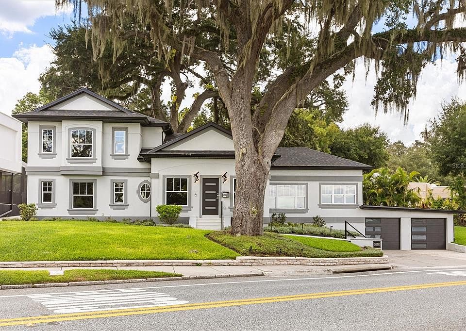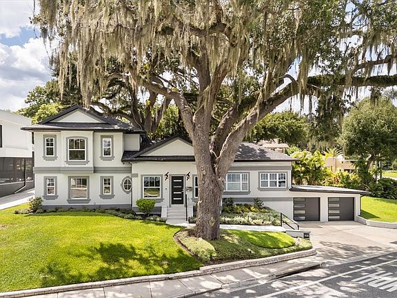 This fully renovated 3-bed, 3.5-bath home offers rare lakefront living with 152 feet of private frontage on Lake Concord—including the only private boat ramp on the lake. Bold modern design meets effortless functionality in a light-filled, open-concept layout with panoramic water views throughout. Dual primary suites feature spa-like baths and custom closets. The designer kitchen impresses with high-gloss cabinetry, quartz counters, glass tile backsplash, and premium KitchenAid appliances. Entertain seamlessly in the lake-facing great room, open dining area, or corner office with sunrise views. Every major system is updated: 2023 roof, new electrical (200A underground service with generator-ready transfer switch), new water heater, and all-new finishes inside and out—including modern stucco, garage doors, and trim. Enjoy a rare Central Florida basement with a half bath and storage/flex space, plus a fully fenced backyard with a hot tub and pergola-covered deck. Across the street, your private lakefront parcel includes a covered dock with power, water, LED lighting, and a boat lift—offering downtown Orlando skyline views and glowing evening ambiance. Located minutes from Downtown Orlando, Ivanhoe Village, and major roadways—this is high-style, turn-key lakefront living in the heart of College Park