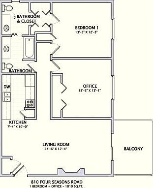 Spacious 1 Bedroom + Office Apartment 808 Four Seasons Rd