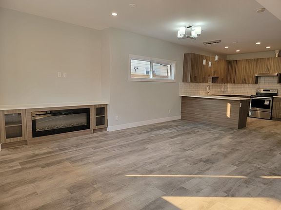 Modern sunlit open-concept homeBuilt-in electric fireplaceContemporary kitchenSleek european cabinetryStainless steel appliancesAmple cupboard spaceEnsuite bathroom