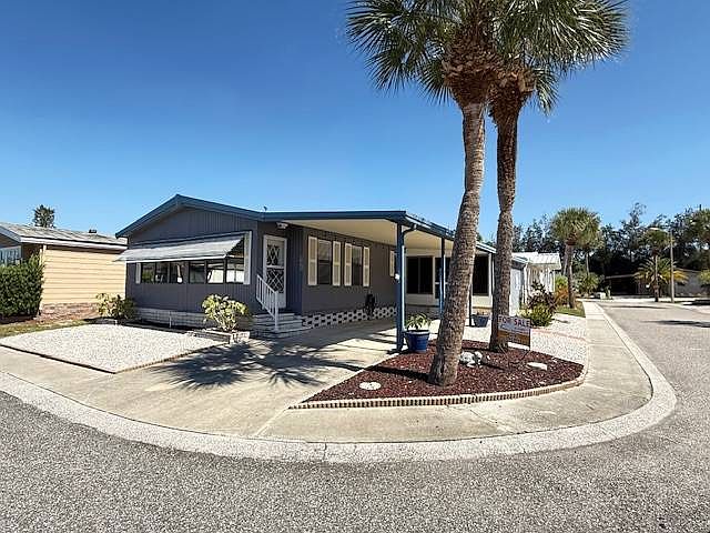 Located in quaint Tarpon Springs, Tarpon Glen is a 55+ retirement mobile home community which features on-site fishing, shuffleboard, and a community swimming pool all set among the beautiful palm trees that the area is famous for. Tarpon Glen also offers you a spacious clubhouse to host social gatherings, organized community outing, and planned activities. Enjoy the nearby beaches, state parks, and world-famous Sponge Docks. This 1987 home is being sold TURN-KEY, so bring your clothes and you are home! The home features a new 3 ton air conditioning unit, a large pavered patio, inside laundry, a new water heater, and stainless steel appliances. The home has that open concept everyone is always looking for along with cathedral ceilings throughout the home, and is beautifully landscaped. The home sits on a CORNER LOT! The living room has neutral walls and bead board accent. There is front door entry and it is beautifully furnished. The kitchen has wood cabinets, granite look counters, and very nice stainless steel appliances. The kitchen is fully stocked and wonderful. The dining room is a large area with vinyl flooring and neutral walls. There is an upgraded light fixture. The master bedroom is a very large room with vinyl flooring, and new paint. There is an accent wall as well. There is a step-in closet, nice furnishings and a beautiful ensuite that has been udpated. There is a new vanity, high toilet, step-in shower, vinyl flooring and a large linen closet. The second bedroom is a great size for hosting family and friends. There is vinyl flooring and it is brightly painted. There is a double closet and it is nicely furnished. The guest bath has been updated and has a high vanity and toilet, tub/shower combo, and vinyl flooring. The Florida room is an amazing outdoor space that opens to the awesome pavered patio that is private and has amazing ambiance. All Florida Mobile Home Sales Inc. cannot guarantee or warrant the accuracy of this information or condition of this property. The buyer assumes full responsibility for obtaining all current rates of lot rent, fees, and pass-on costs. Additionally, the buyer is responsible for obtaining all rules, regulations, pet policies, etc., associated with the community, park, or home from the community/park manager. All Florida Mobile Home Sales Inc is not responsible for quoting of said fees or policies. LOT RENT: $910 and includes water, sewer, lawn, trash and taxes. Additional water usage billed bi-monthly.