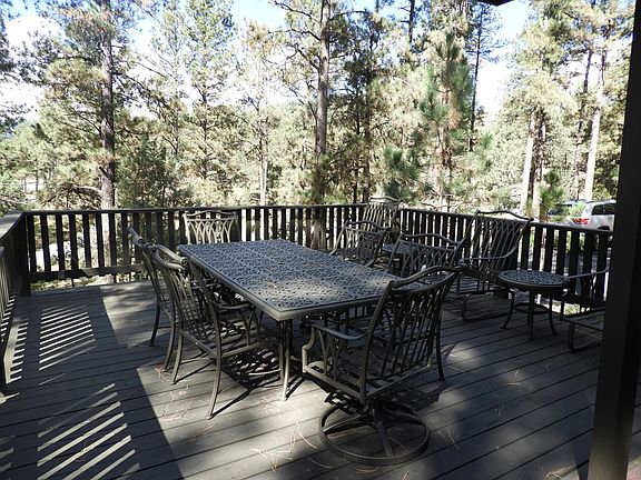 Mountain Ambiance Abounds from this Charming Fully Furnished One Level 3 Bedroom. 2 Full Bath Home on a Beautiful .89+/- Acre Wooded Lot! Gracious and Inviting Open Deck for Entertaining and Relaxing With Incredible Wooded and Mountain Views toward Sierra Blanca . Wonderful Living Space with Cozy Wood Burning Fireplace, New Wood Flooring, Custom Faux Painted Walls and Cabinets, Delightful Kitchen with Newer Appliances and Bar Area Seating, Lovely Dining Area, Custom Light Fixtures Throughout, Bonus Room located off of the 2 Car Garage Area would make a Great Hobby/Exercise Room or Office/Den. Small Back Patio Provides Privacy and Tranquility, Ready to Move In and Truly A Must See!
