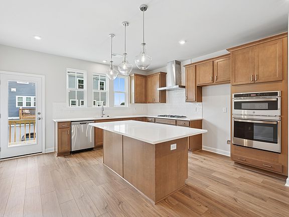 Ready now! Welcome Home to the NOLA. Spacious 4 BR/3.5 Bath townhome in The Mews in Holding Village. First floor features a guest suite with full bath and built in drop zone. Oak tread staircase leads to the 2nd floor. Spacious great room, kitchen & dining area. Enjoy tons of natural light from all the windows. The gourmet kitchen includes a built-in wall oven, large island, pendant lights, soft close drawers & quartz countertops. LVP throughout the second floor. The third floor showcases the primary suite with tiled shower and large walk in closets. Two additional bedrooms, full bathroom, and laundry room. Attached 2 car garage. 9ft ceilings on all floors. Other features include: tankless gas water heater, Ring doorbell, Schlage Front Door Lock, electric car charging outlet, whole house surge protector. The community features a 15 acre lake, pool, clubhouse, parks, and trails!
