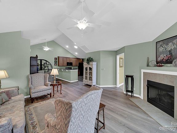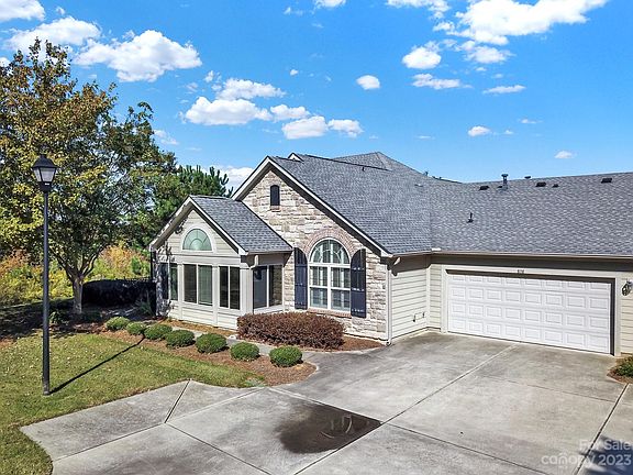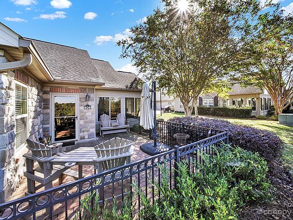 Inside, you'll find recently updated LVP flooring, providing a modern and low-maintenance look. The split bedroom layout ensures privacy, while the open living, dining, and kitchen area is ideal for entertaining. Granite countertops and vaulted ceilings add an elegant touch. Enjoy endless sunsets from the sunroom. The 2-car garage provides ample storage, and all your exterior worries are taken care of, thanks to included lawn care. Additionally, this condo is part of a community that offers a fitness center, clubhouse, and even water and garbage pickup - all included in the HOA fees. Convenience is key, with shopping, dining, and easy access to I-77 just moments away. Your next chapter begins here. Don't miss this opportunity.