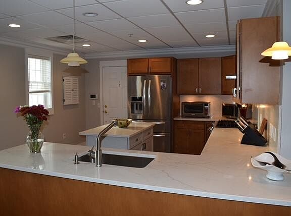 Unbelievable Location! Near Silver Beach, Harbors + shops and restaurants. Luxury spacious condo with roughly 2,300 SF living space. Featuring to many updates including quartz countertops, custom built designer closet and expansive mother-in-law suite with kitchenette, wine cooler and ice maker. Also includes covered parking, secure entry as well as an elevator. Building amenities include library, guest quarters available to use for residence use, makes this a truly unique building. Nice open floor plan offers multiple living areas, three bedrooms, spacious kitchen opens to dining area plus nice master suite all on one floor. Private covered patio is perfect for summer enjoyment. Finely appointed finishes throughout with built-ins, wood floors, plus family room with kitchenette. Perfectly located: near Silver Beach. Call for a private showing.