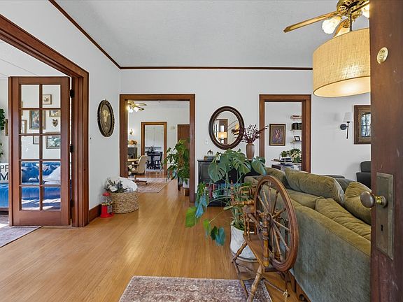 Enjoy the warmth of small-town living in this beautifully updated Craftsman-style home. Step into the bright living room and then venture through French doors to a private office or cozy retreat. Fresh paint & new carpet complement the original wood floors throughout. The bathroom has been fully renovated with all-new plumbing, and the cheerful kitchen offers some newer cabinets and updated plumbing. Outside, unwind on the inviting covered patio or spacious front porch framed by mature trees and landscaped walkways. With a new water heater and furnace already in place, this home blends timeless character with modern comfort-move in and enjoy!