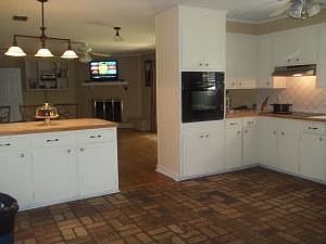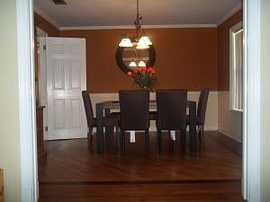 Spread out in this 3BR/2.5 bath home with over 2600 sq. ft.? Living room, sunken den and great room are all spacious.? Separate formal dining. Nicely redone bathrooms, master bath has whirlpool tub.? No carpet.? 5 burner stove and built-in Jenair oven. Brick floors in kitchen.? Beautiful wood and tile throughout the rest. Fenced in back yard with covered patio and brick barbecue pit in the back.