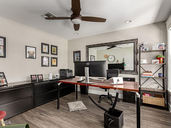 The perfect mix of urban energy and single-family peace and quiet, this end-unit Roosevelt-area McKinley Row townhouse is the ideal home base to experience the incredible range of culinary and cultural activities Downtown Phoenix has to offer. Just steps from The Vig, Cibo Pizza, Lola Coffee, Proof Bread, First & Last, the Roosevelt/Central Light Rail station and the Japanese Garden, you can leave 2 cars charging in the 2-car attached garage and spend the weekends exploring, or sitting on the shady front porch watching the world go by. The first floor features the attached 2-car garage, and a roomy office space with views to the shady front porch and front yard. The second floor features the first of 2 HVAC zones (the first and second floor on zone 1), wood-look vinyl flooring, an oversized sun-filled kitchen with wrap-around bar seating, gas range with stainless hood, coffee station and quartz countertops; powder room, exposed-wood beams and a large living room leading to a spacious east-facing balcony with bar-seating and city lights views; the third floor features a second HVAC zone, stacked laundry station, plenty of storage, and 2 spacious en-suite bedrooms, the largest of which has soaring 15-foot ceilings, double-vanity, high-volume ceiling fan and 2-story corner windows with city-light views just over the tree canopy below. The attached 2-car garage features hanging storage racks and two 240V power outlets for easy EV charging (chargers not included). All windows/doors feature high-end roller sunshades, with blackout variants in each of the two bedrooms (the larger of the two bedrooms are also electric/remote-controlled). Entire community roof resealed as part of HOA-mandated maintenance in late 2023. Built in just 2018, and meticulously maintained by the original owners (and McKinley Row HOA Board member), this home offers all the peace of mind of a new build with the mature landscaping and quick-move-in of an established home.