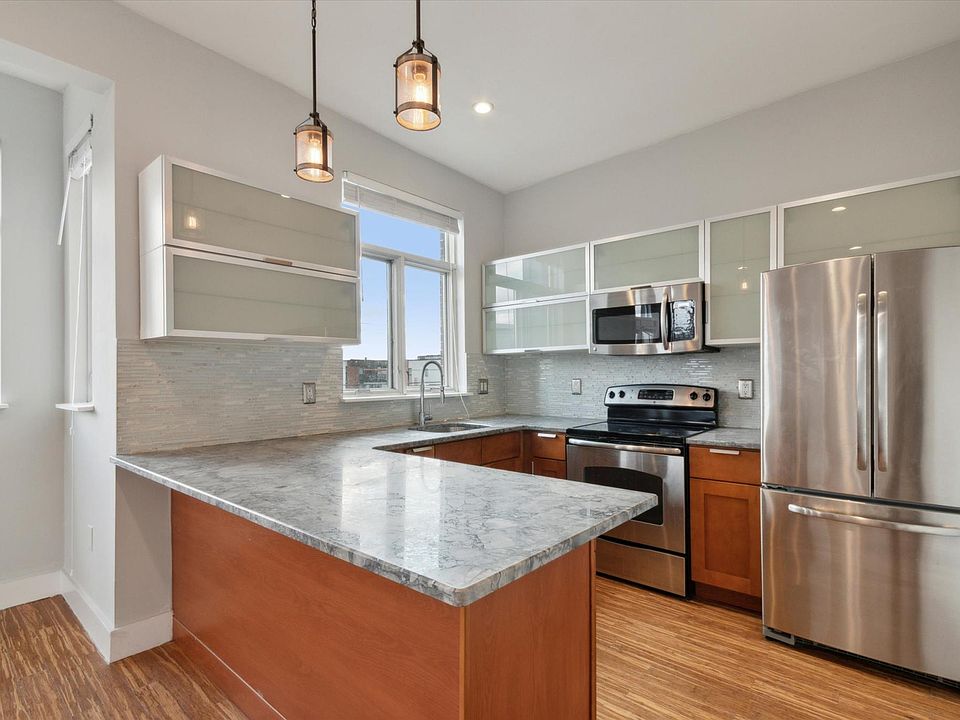 Quartz countertopsAbundance of natural lightJuliette balconiesPendant lightingAbundance of storageHardwood floorsCustom closet inserts