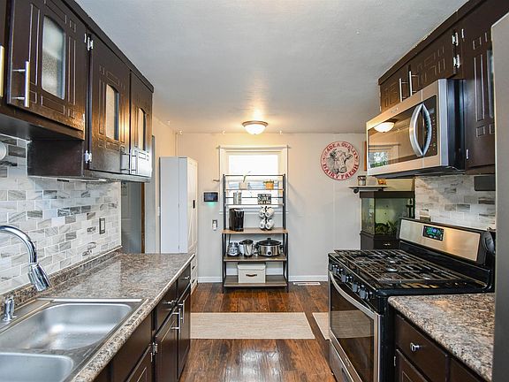 Fully fenced yardNew shinglesUpdated vinyl windowsGas rangePermanent sidingTwo patiosUpdated stainless-steel appliances