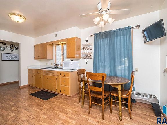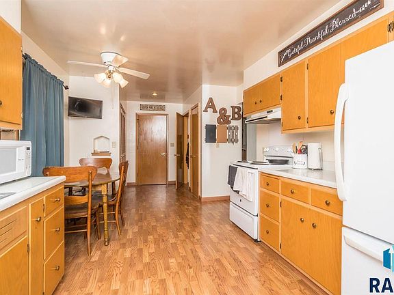 Come home to this delightful ranch in a serene neighborhood in small-town Dell Rapids! Fabulous eat-in kitchen with lots of countertop space, plenty of cabinets, low-maintenance flooring, large pantry, and dining room with beautiful picture window. Huge and sunshine-infused living room with built-ins and grand bay windows overlooking a lush, private yard. Main floor laundry area with washer & dryer to stay. Three spacious bedrooms on the main floor, including a dreamy master bedroom and full bathroom. Lower level hosts two non-legal bedrooms, 3/4 bathroom, built-in storage area, and additional laundry area with washer and dryer hook-ups. Attached 2-stall garage and workshop area. This home is the whole package!