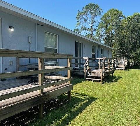 Investor Alert! Well-maintained 2007 tri-plex on a desirable corner lot featuring three 2BR/2BA units (1,085 sq. ft. each). Each unit includes large bedrooms, assigned paved parking, covered entry, private rear deck, and in-unit washer/dryer hookups. Built with 1-hour firewalls between units and elevated above flood level—no flood damage in recent storms. This is a solid income-producing property with low-maintenance construction, strong rental history, and long-term tenant appeal. Conveniently located near shopping, dining, and the Citrus County Transit line. Sold AS-IS.
