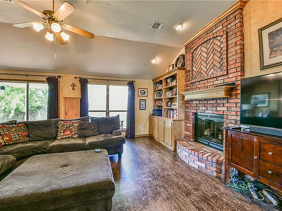 MULTIPLE OFFER SITUATION!!! HIGHEST AND BEST DUE BY NOON ON 7/17. Come check out this fantastic custom built home located in the Moore school district near the Parmele Park and many local shops! Recently added wood look vinyl plank flooring in the Living Room and Bedrooms. New HVAC System installed in 2018 and storm shelter in the garage. The Living Room features 10 foot ceilings with a brick fireplace and built in shelving. The Living Room is open to a nice sized Kitchen and Dining for easy entertaining. Split floor plan with 2 Bedrooms and full bath off the Living Room and an oversized Master Bedroom with full on-suite and walk-in closet. Homes like this sell fast so schedule your showing now!