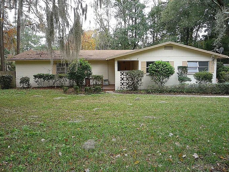Bushes, Trees, Spanish Moss, Fenced in backyard.