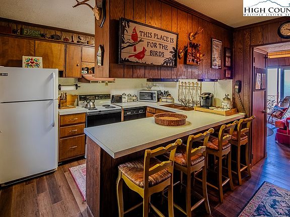 GREAT long range north view from this classic chalet. Easy flat entry into home. Entry is large foyer with utility room to side. Large kitchen with eat on bar top. Living room is high ceiling with magnificent stone fireplace. Master bedroom and bath on one side and two guest bedrooms on other. Steps go up to loft area currently being used as more sleeping area but could be office, game room, or whatever else would be needed. Furnished with exceptions. Beech Mountain Club membership is current and can be transferred for small fee, allowing for access to 18-hole championship golf course, tennis courts, pool, pickleball courts, and much more. Home is also located near the Twon Buckeye Recreation area. This is a 1968 style home that does need updating although much has already been done including laminate flooring, new roof, and more.