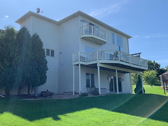 This beautiful home in a wonderful neighborhood has many unique, custom features. The first floor is open-concept and full of high ceilings and amazing natural light; it contains a spacious kitchen with double oven, gas range, walk-in pantry and granite island, a raised dining room with tray ceiling and new wood floor, an open living room area with a gas fireplace and built-ins, an office area enclosed by french doors, large foyer, powder room, mudroom and laundry. A deck extends along the length of the main floor and offers views of Blue Mounds State Park and evening sunsets.The first floor opens partially into a cozy loft area and three bedrooms on the second floor. The master suite has a private terrace, walk-in closet with custom built-ins, spacious double-sink bath, and tray ceiling. The two additional bedrooms also have spacious closet with built-ins and a charming Jack-and-Jill bedroom with double sinks and private shower area in-between. The lower level of the house is walkout with four floor-to-ceiling patio doors/ windows. There is a spacious family room with a gas fireplace and built-ins, large workout/ game room area, full bath, spacious bedrooms, and plenty of storage. This house is priced to sell!