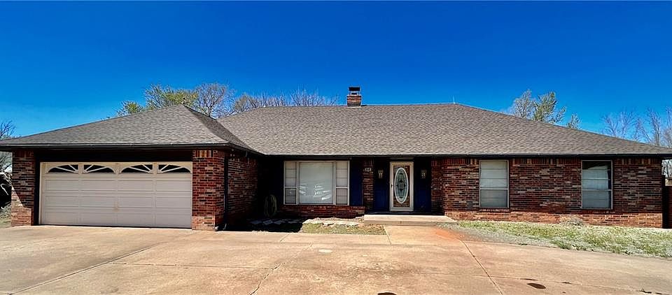 Gorgeous 4 bedroom 3 bath home with a basement and safe room! Open floor plan with a breathtaking view of the Oklahoma Sunsets. Fenced yard and workshop. 2 car garage and circle drive.