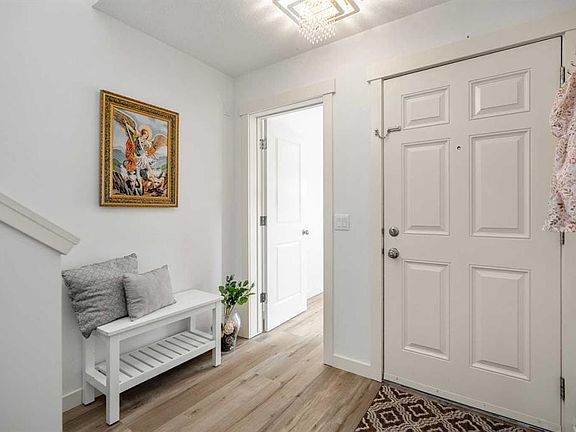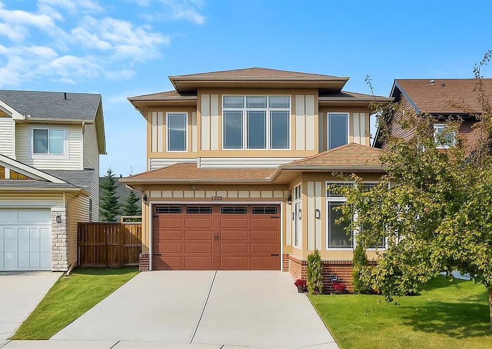 **OPEN HOUSE SUN NOV 23 1-3PM**What a fantastic family home!! Nestled on one of the most sought-after streets in award-winning Cooper’s Crossing, this stunning home is designed to impress. Step inside and be greeted by a gorgeous, open foyer with soaring ceilings and a grand staircase as well as a main floor bedroom that easily fits a queen-sized bed and could be used as a home office or homeschool space. Before you enter the main living area you find a fabulous and well situated guest bath perfectly tucked away. The living space dramatically opens with 9FT ceilings, wide vinyl plank flooring, adjustable LED pot lights and chandeiler, and oversized windows with custom blinds, all allowing for plenty of light. The heart of the home is the fully renovated chef’s kitchen, featuring a built-in oven, microwave, and stovetop with a chimney hood fan, and elegant white cabinetry with glass panels and custom lighting – even inside the cabinets and along the toe-kicks for a dramatic evening glow. A fantastic walk-in pantry and functional mudroom with a deep freezer off the heated garage keeps everything organized and out of sight. The dining area comfortably seats eight, framed by picture windows with beautiful views of the backyard, while the living room invites you to gather around the striking floor-to-ceiling stone fireplace. Built-in shelving with power outlets flanks the fireplace, ready for your favorite décor or media setup. Upstairs has an air of sophistication with a lovely family room that overlooks the foyer – the perfect place for cozy movie nights. Architectural detail and arched doorways add a level of sophistication. The king-sized primary suite is a true retreat with its large windows, spa-like ensuite with maple cabinets, a soaker tub, walk-in glass shower, private water closet, and a sun-filled walk-in closet with its own window. Two additional well-sized bedrooms share a conveniently located main bath, and the laundry room – also with a window – is upstairs where you need it most. The unfinished basement is a blank canvas with plenty of space for two large bedrooms. Outside, the deck overlooks a large backyard – ideal for entertaining, gardening, or watching the kids play. The oversized heated garage boasts excellent storage, a new extra-tall garage door for trucks or vans, and there is LED exterior lighting for curb appeal and security. Living in Cooper’s Crossing means you’re part of Airdrie’s most celebrated community – voted Best Neighbourhood year after year – with its abundance of parks, playgrounds, pathways, and nearby schools. Add in the safe, welcoming atmosphere and this home truly has it all.