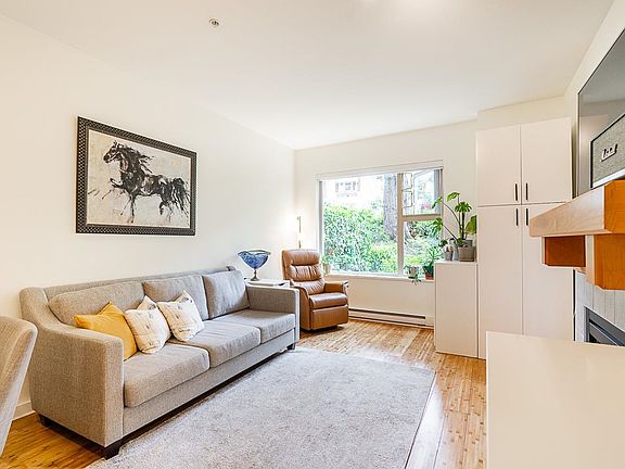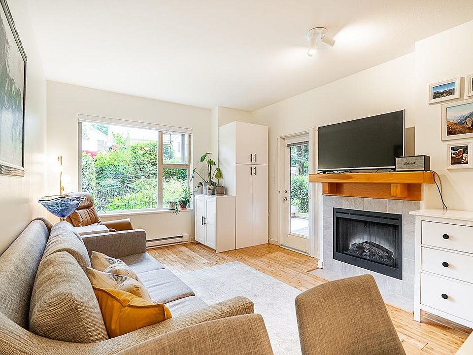 Welcome to The Brockton! This bright and private 1 bed corner home combines comfort and convenience with nearly 9-foot ceilings and a smart, open layout. Enjoy the ease of ground-level living with a spacious 121 sq. ft. patio—perfect for morning coffee, BBQs, or quick access to the street. Thoughtful updates include laminate flooring and stainless steel appliances. A same-floor storage locker and secure parking add everyday practicality. The well-managed, Whistler-inspired building has refreshed common areas and a welcoming community feel. Steps to Safeway, Starbucks, Queen’s Park, and New Westminster’s new Aquatic Centre, this is the perfect place for first-time buyers or downsizers seeking walkability and lifestyle.