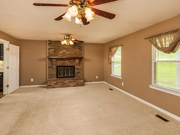 Welcome home to this Ringgold, Georgia charmer featuring three bedrooms, two baths and ample entertaining space convenient to I-75. At first glance, you see the fantastic curb appeal of the home with its fresh landscaping and cozy front porch. Inside, the living room invites you in to sit next to the beautiful gas fireplace or enjoy the wooded views from the large windows from the den/family area off the kitchen. The home features a large master suite with master bath, creating a perfect oasis for rest and relaxation. There is no shortage of outdoor entertaining space, with a back porch overlooking the spacious backyard. Other outdoor features of the home include a two-car garage and an out building. The home also includes new double-pane windows, a new HVAC and a new water heater.
