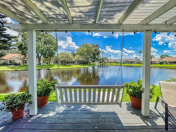 From the main living areas and primary suite, enjoy breathtaking lake views framed by upgraded hurricane-impact windows and sliders. The screened lanai, enhanced with extra-strong screening and accessed through its own sliders, is a private retreat where you can relax and take in Florida’s colorful sunsets. Just beyond, a large pergola with a new sun sail and outdoor string lighting over a large deck creates an inviting outdoor living space.