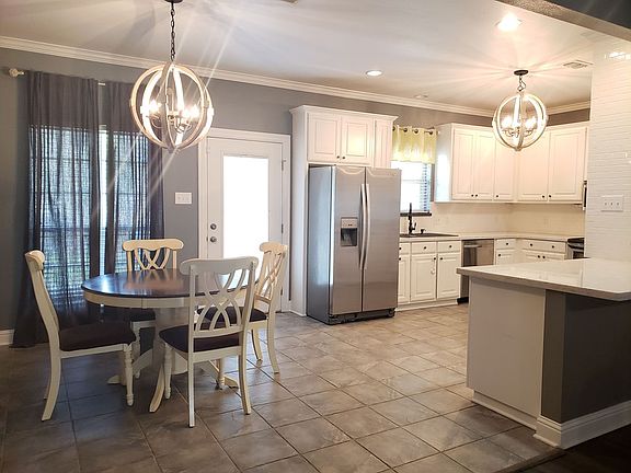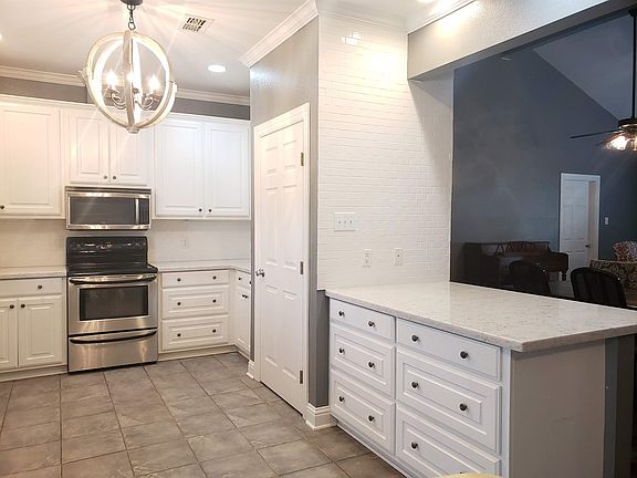 Modish Glamour exudes from this newly updated 2266 sq ft home. With open concept living and plenty of space for your family's needs, you can't go wrong with this 3 bed / 2 bath home. Located on the desirable and quiet Village Gate Circle, you are sure to enjoy peaceful living. This kitchen is fabulous and offers all the new colors and styles with ceramic tile, white cabinets, white tile backsplash, large island, quartz countertops, granite sink, stainless appliances, and huge pantry. You will be up-to-date in the most frequented room in the house. Recessed lighting, vaulted ceilings, open concept, 2" wood blinds, and lots of windows that offer tons of light throughout. Each bath has framed mirrors. New lighting and vinyl plank flooring throughout the home. An incredible utility room and new roof! Privacy fenced back yard, covered patio with extra space for bbq grill and lawn furniture, quiet circle street.
