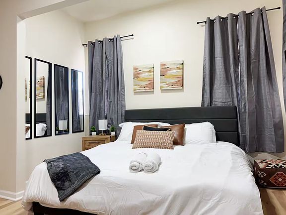 Cozy bedroomFast wi-fiSmart tvFully equipped kitchenKing-sized bedIn-building laundry