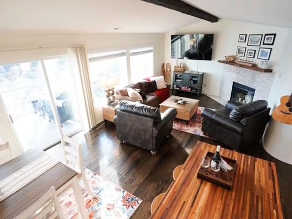 Enjoy the spacious feeling of vaulted ceilings, modern furnishings, and an open kitchen/dining/living area. The condo features 2 bedrooms, a primary bedroom with a king bed and en-suite bath, and a secondary bedroom with twin bunks plus a trundle and second bath. There's also a sofa sleeper in the living room. The unit includes a washer and dryer, one reserved covered parking spot, and ample guest parking.