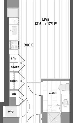 - Separate sleeping area closed off by sliding barn door **walls not fully enclosed