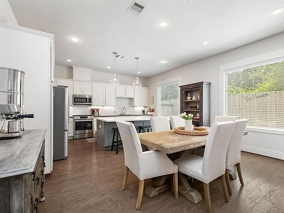 Recently constructed Freestanding home tucked in the back corner of Woodcrest Court, a great location with easy access to Shepherd Dr. Unique floor plan with the living areas on the first floor and 3 bedrooms up. The Island Kitchen is open to the living and dining and has stainless high-end appliances and a beautiful backsplash. The covered patio and artificially turfed backyard are great for entertaining, pets, and play! Spectacular Primary Suite has high ceiling, custom accent wall, huge walk-in closet, and an elegant bathroom. Two additional bedrooms are also upstairs with access to the shared bath. Close to neighborhood parks and minutes to popular shopping and restaurants.