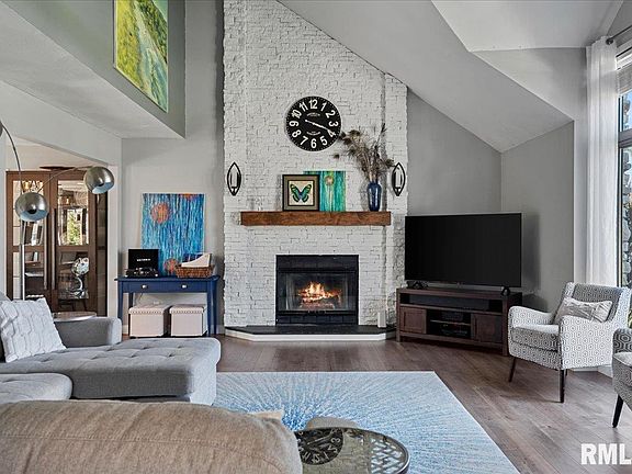 Nestled within a picturesque, tree-lined subdivision, this captivating 1.5 story home boasts an abundance of space & modern elegance. Step inside to discover soaring vaulted ceilings adorned with 4 skylights, flooding the interior with natural light. The updated kitchen is a chef's delight, featuring a large quartz waterfall island, a 6-burner gas stove, & a built-in wine fridge, perfect for entertaining guests or enjoying family meals. Convenience meets style with a perfectly placed drop zone and 3 separate living spaces, offering ample room for relaxation & gatherings. Retreat to 4 generously sized bedrooms, plus an office & bonus room in the basement, providing versatility for your lifestyle. Outside, experience your own private paradise on the expansive Trex deck spanning the length of the home. A sturdy pergola offers a reprieve from the sun or rain. Relax in the outdoor living room, complete with a beautiful fireplace, TV brackets and wired for surround sound, while overlooking the large in-ground pool featuring a luxurious 6-foot tanning ledge. The large evergreens create a tranquil oasis for your enjoyment. This is a stunning property with updates throughout including flooring, kitchen, baths, all 56 windows, 2 AC's & 2 Furnaces, light fixtures and the outdoor living space. Prepare to fall in love with your next home.