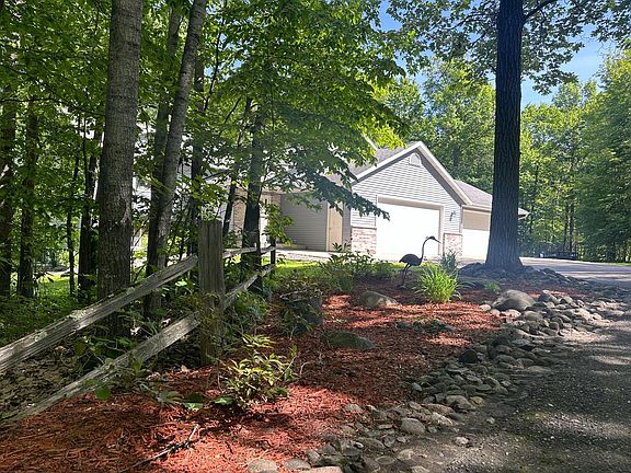 Nestled on 2.66 acres of wooded paradise in the heart of the lakes area! This impeccably maintained 4Br, 3Bath home has been gently lived in and may be one of the most turn key homes on the market today. A great floor plan offering large spaces, both inside and out, for entertaining large gatherings or for finding some peace and quiet. The yard is beautifully landscaped with several areas for plantings. It even includes a small wildlife pond! The garage areas are separated into two double garage spaces, each insulated and separately heated, providing additional gathering spaces or that shop area you've always craved. One even includes a small kitchenette to facilitate parties. There are two decks, one large one at ground level and a composite deck and railings off the upper level dining area. A fenced and raised garden area is supported by it's own garden shed.