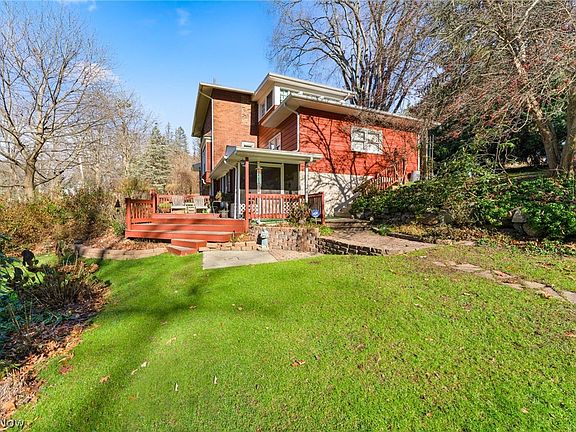 Check out this beautiful 2 story Brick House on almost 6 acres of land in Masury. This house has been well maintained over the years. The large front porch welcomes you into a large living room with hardwood flooring and a fireplace with built ins. The eat in kitchen offers beautiful wood cabinetry, laminate countertops and a nice size eating area. The kitchen has access to the attached garage with nature stone and storage throughout. Upstairs hosts 3 bedrooms. 2 bedrooms with carpet and good closet space while the other one has hardwood flooring and access to the 2nd floor sunroom that overlooks your property. Full bathroom has a tub with tile walls, tile flooring, large vanity with medicine cabinet. Pull down attic access in the hallway. The basement has a finished room that could be an additional living space or bedroom with a closet. Full bathroom in the laundry area. Walk out access to an enclosed porch with large storage room on the ground level of your backyard with 2 decks. Dim