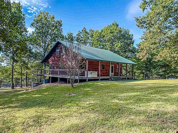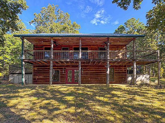 Rustic Log Cabin Retreat on 5 Acres M/L – Only 10 Minutes from Town! Escape to your own slice of cozy, country paradise with this 2,000 sq. ft. log cabin, perfectly blending rustic charm and modern comfort. Nestled on 5 beautiful acres m/l, this 3 bed, 2 1/2 ba log home offers vaulted ceilings, covered wrap around porches or outdoor living space, gas log fireplace, your own stocked pond, and 30 X 40 (approx.) concrete pad could be used for a shop— all just 10 minutes from town!