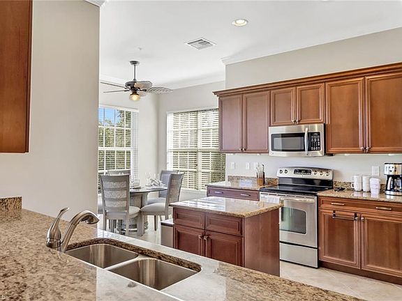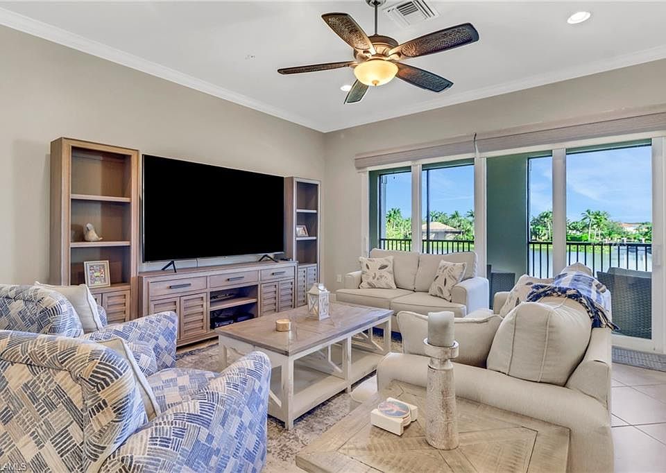 Stunning 3 Bedroom + Den with 3 bathrooms, a little office space and 2 car garage. You are welcomed by a foyer area as you enter a spacious coach home in the Players cove of Lely Resort. Tile in main living areas and carpet in the bedrooms. Crown molding and tray ceilings throughout. Your gourmet kitchen offers GE stainless steel appliances, granite counters, island, pantry and lots of cabinet space and a break fast nook. Turnkey so just bring your suitcases and enjoy the florida lifestyle. Spacious Main Bedroom overlooking the lake with oversized walk in closet. Main Bathroom En-suite offers a soaking tub, separate walk in shower and double vanity with make up counter. Enjoy a cup of coffee on your spacious screened-in lanai overlooking a beautiful lake. The clubhouse offers multiple dining options from casual to formal. Additionally, a large lagoon pool with a waterfall, 12 Har-Tru Tennis Courts, 4 Bocce Ball Courts and 2 Pickleball Courts. For those interested in wellness, there is a 6,000 square foot fitness center and spa offering a wide array of services. Lely Resort has 3 golf courses. The Mustang & Flamingo are both public golf courses, the Classics is a private golf club.