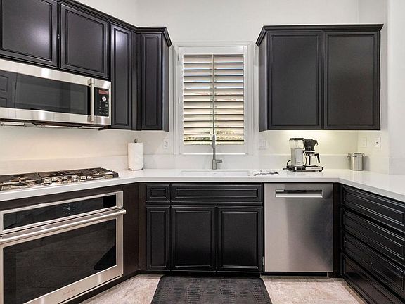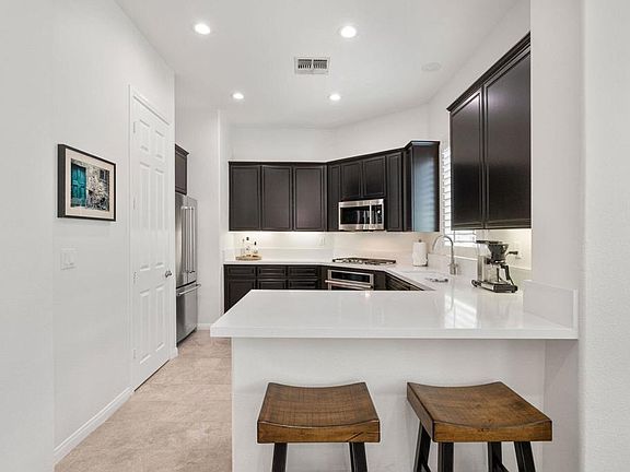 Recently renovated & offered furnished turnkey (with an acceptable offer), this light-filled single-family residence delivers both style & functionality located in the sought-after resort-like community of Puerta Azul. Approved for SHORT-TERM RENTAL use, it presents an exceptional investment or vacation opportunity with no minimum night stay requirements & lower monthly HOA dues.The 1,371 sq. ft. layout features 2 bedrooms, & 2 bathrooms thoughtfully separated for privacy & ideal for hosting guests. Elegant porcelain plank tile flooring paired with custom plantation shutters, new interior paint & new LED recessed lighting extends a seamless, refined aesthetic throughout the home. The open-concept living & dining area with fireplace flows seamlessly into a gourmet kitchen newly equipped with top-of-the-line GE Monogram/KitchenAid/Bosch stainless steel appliances, newly installed white quartz countertops, updated cabinetry, and pantry. A quaint, sun-kissed patio extends the living space outdoors, perfect for morning coffee or evening gatherings.The spacious primary suite offers a newly installed white quartz countertop with new dual sinks, a beautifully renovated walk-in shower, and a generous walk-in closet in the bathroom, creating a private retreat. Positioned between two sparkling community pools and spas, and steps from overflow guest parking, the home sits on a prime interior location. Additional features include an interior laundry area with new washer & dryer and an attached one-car garage.Residents & guests can enjoy a full suite of resort amenities including a clubhouse, fitness center, tennis court, and lushly landscaped grounds. Located minutes from Old Town La Quinta, PGA West and SilverRock golf, and the Coachella and Stagecoach venues, this home offers the quintessential Desert lifestyle with strong income potential. Schedule a viewing as this property will not last long.