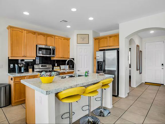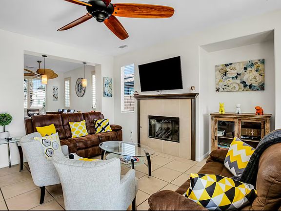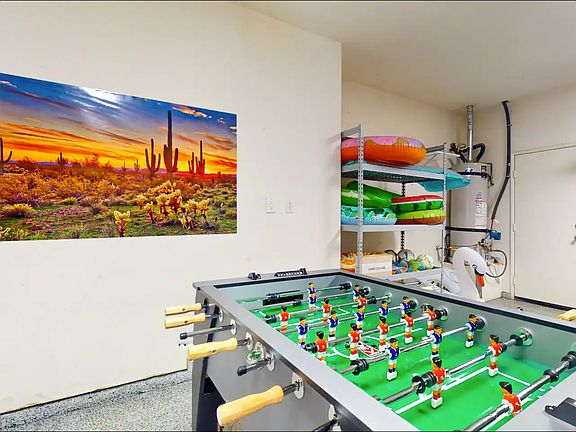 Welcome to Sun-Soaked Getaway at Casa Megan in the Coachella Valley! This delightful vacation home offers the quintessential desert lifestyle, with ample indoor/outdoor living space and entertainment areas to enjoy a fun-filled, relaxing getaway with friends and family. The backyard has an inviting pool and hot tub, as well as a BBQ and fire pit. Its prime location is walking distance to Coachella/Stagecoach and convenient to area events and attractions. Make Sun-Soaked Getaway your destination for an unforgettable adventure! Your Desert Oasis Awaits Step into comfort and style in our beautifully appointed single-story retreat. With four spacious bedrooms, everyone will enjoy their own slice of privacy, while the open-concept living areas encourage togetherness. Prepare delicious meals in our chef's kitchen, equipped for culinary enjoyment. Entertainment Galore Our game room is a haven for fun! Challenge your friends to a ping pong match, enjoy a round of foosball, or compete in classic arcade games like Ms. Pac-Man and NFL Blitz Legends. For outdoor enthusiasts, we offer jumbo 4 in a Row, tower games, and corn hole for endless entertainment. Sun-Kissed Relaxation The backyard is your personal paradise. Dive into the sparkling private pool or unwind in the soothing spa. Bask in the sun on poolside lounge chairs or the comfy daybed. For those seeking shade, our covered patio with optional cooling misters is perfect for alfresco dining or sipping cocktails as you enjoy breathtaking mountain views and mesmerizing sunsets. Stellar Stargazing As night falls, the desert sky transforms into a stargazer's dream. Gather around the firepit, roast marshmallows, and marvel at the star-studded sky with your loved ones. Prime Festival Location Situated within walking distance of the Coachella and Stagecoach festivals, Sun-Soaked Getaway is well-positioned for access to the Valley's top festivals. Enjoy the International Tamale Festival, BNP Tennis Tournament in Indian Wells, and more. Explore attractions like Old Town La Quinta, Palm Springs Aerial Tramway, and Joshua Tree National Park. Pet-Friendly Comfort. Bring along your furry friends! We welcome up to two dogs in our home, ensuring that your whole family can enjoy the desert getaway. Additional Information *Guest entry instructions: This rental utilizes an E-lock, a digital lock that requires a unique code to enter. This code is reset after each guest's stay. *Security: The property is equipped with exterior cameras at the front entrance and garage for security, and noise monitoring devices to prevent excess noise disturbances. *Pool & Spa: 2-day advance notice is required to heat the pool and spa, with a daily fee of $75 which must be paid prior to check-in. Guests can contact Vacasa after booking to purchase pool spa heat for your stay.