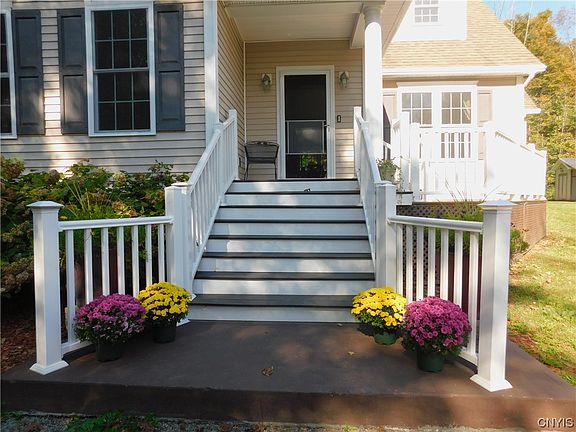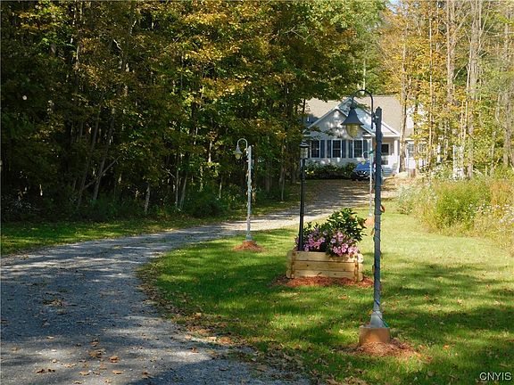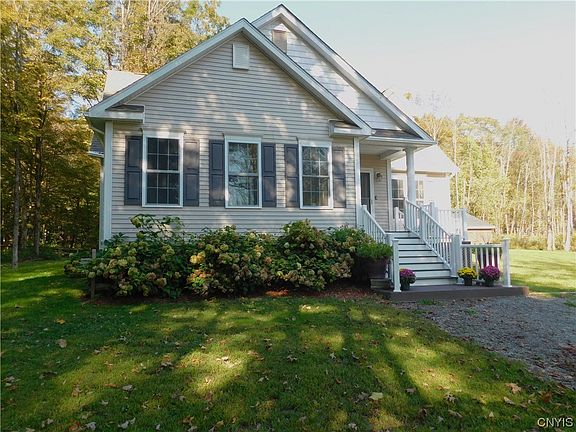 Lovely cape cod home located on nine private acres, partially wooded with large lawn. This ten year old five bedroom home offers an exceptional first floor master bedroom with walk-in closet and master bath. The main living area has an open floor plan including kitchen with breakfast bar, dining area and living room. Convenient first floor laundry right off kitchen. First floor also includes two additional bedrooms or great for home office and full bath. Second floor offers two large bedrooms with expansive closet space and a full bath. From dining area access sliding glass doors to your deck and amazing yard. A bridge spans a small stream on the north side and walking trails traverse the property. A poured wall 9' basement provides incredible storage or possibilities for familyroom/rec room. All located in the Holland Patent school district.