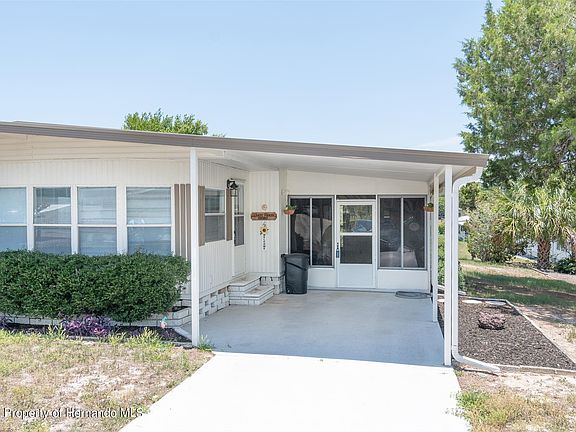 THIS HOME QUALIFIES FOR A LOW INTRODUCTORY INTEREST RATE OF 5.50% FOR THE FIRST YEAR WITH SUPREME LENDING! Nestled within a 24/7 gated 55+ community with a beautiful golf course with clubhouse & a swimming pool, this bright and freshly appointed home features two bedrooms and two bathrooms that boast updated fixtures, window blinds, fresh paint and flooring through out the home. This home features an open floor plan that begins with a spacious living room that has beautiful windows sporting new blinds that allows plenty of Florida sunshine into the entire home. From the living room you can move into the family room/formal dining room, the choice is yours. This room has beautiful double windows that allows for plenty of natural light in making this a great formal dining room that is large enough to host big family dinners at the holidays or it could work well as as den to watch the game or relax with a good book in your favorite comfy chair. The options are endless for this great space. The kitchen sports a pass-through to this room, making it easy to grab your snacks and cocktail from the kitchen without going to far. The pass through also allows plenty of natural light in to the kitchen which boasts new paint, stainless steel appliances and updated hardware. The open concept continues from the kitchen to the another beautifully appointed space that could serve as the dining area, with a beautiful built-in wall unit that provides space to display your collectables with overhead spot lights that put the focus on your favorite painting or a beautiful mirror. Cabinets located at the bottom of the built-in provide additional storage room. The master bedroom has a spacious closet and an on-suite bath with updated fixtures and a large shower while the guest bedroom also has a large closet and the guest bathroom has updated fixtures and a shower/tub combo for convenience. Outside, the home offers a carport to keep your vehicles out of the Florida sun and provides easy access to a large sun room that sports vinyl windows for extra insulation during the winters months as well as vertical blinds to help keep the sun out in the summer. The sunroom also has indoor/outdoor carpet so it is ready for your patio furniture, potted plants, and to become your little outdoor oasis. This room leads to a enclosed garage space that houses a full size washer and dryer, room for shelving and has electric making it a great workshop area. This home is located in an active 55+ community the security of gated entry, a clubhouse, pool and beautiful golf course all for a modest $50.00 monthly HOA.