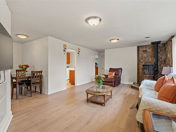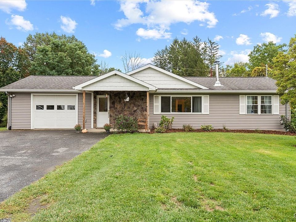 Welcome Home! This well-maintained ranch offers comfortable single-level living with an open and functional floor plan. The spacious living room is filled with natural light. The kitchen includes updated countertops, a tile backsplash, stainless steel appliances, and ample cabinet space, opening to a dining area perfect for everyday meals or entertaining. This home offers 2 bedrooms, including a flexible third bedroom/office with sliding doors leading directly to the backyard deck. The full bath has been updated with a double vanity and includes convenient first-floor laundry. Outside, enjoy a large private backyard with a firepit, mature trees, and plenty of room for recreation, gardening, or pets. Additional features include an attached garage and a paved driveway.