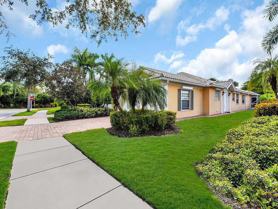 Discover exceptional privacy and comfort in this beautiful Capri‑model home featuring an extended living room and expanded lanai — perfect for relaxing. White and bright kitchen with a breakfast bar makes it perfect for entertaining. This one‑owner residence has been lovingly maintained and includes hurricane shutters for your convenience. Lots of amenities with low HOA fees, offering 24-hour guarded entry, a lagoon and lap pool, tennis, pickleball, bocce, basketball courts, miles of trails, a fitness center, post office, full-service café, ice cream shop, gas station, salon.
