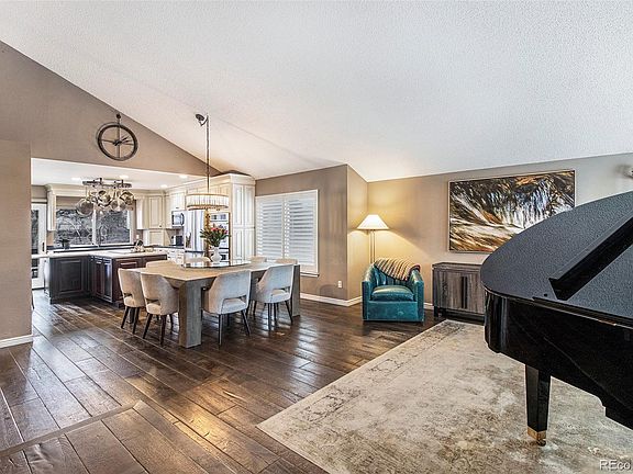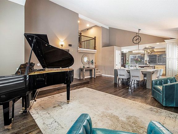 Welcome to the highly desirable Willow Creek community in Centennial, CO! This stunning home sits on an oversized lot that backs to a greenbelt and walking paths, offering both privacy and natural beauty. Upon entering, you’re greeted by a spacious formal living room with barn-scraped hardwood floors that extend throughout much of the main level. The vaulted ceilings and abundant natural light highlight the open layout, leading into a gourmet kitchen perfect for entertaining. The kitchen features a large island with breakfast bar seating, soapstone and quartz countertops, stainless steel appliances including the Jenn Air a double oven and induction cooktop. The ample cabinetry ensures you’ll have plenty of storage space. The inviting family room, with its cozy wood-burning fireplace, is perfect for relaxing or hosting movie nights. Upstairs, the primary suite boasts an updated private bath, while two additional spacious bedrooms and a secondary full bath offer plenty of room for family or guests. The open loft provides flexibility for a home office, playroom, or more. The finished basement adds even more space, with a fourth bedroom and extensive storage. Step outside to the beautifully landscaped backyard, featuring a large paver patio, hot tub, stone firepit, and a fruit garden with raspberries, a peach tree, grapes, and mint—ideal for enjoying Colorado’s outdoors. This home is ideally located just two blocks from the clubhouse and community pool, and one block from Willow Creek Park, offering playgrounds, a creek, and open spaces. Willow Creek’s amenities include a community pool with a swim team, tennis courts, and regular social events like happy hours and pool parties. Shopping and dining are just a short drive away, with Park Meadows Mall, Walmart, and Costco nearby. Experience the best of Colorado living in Willow Creek, where every convenience is just minutes from your doorstep!
