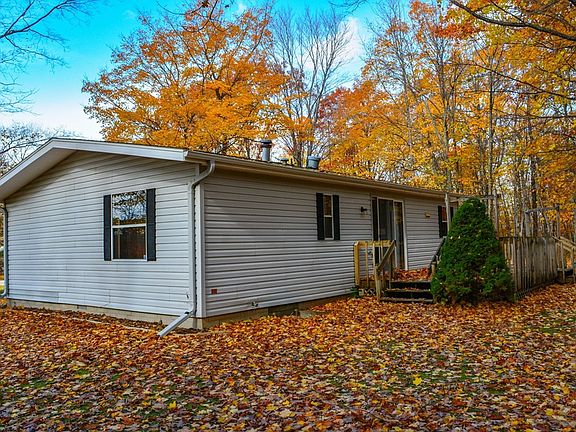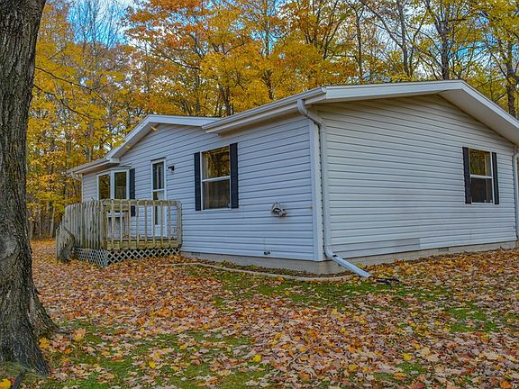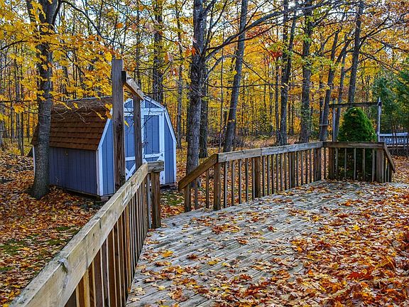 Located only about a mile and a quarter out of downtown Baileys Harbor, this move-in-ready home includes two bedrooms (both with big closets), one bath, a roomy living-dining room, and newer flooring throughout most of the house. There's also a huge wrap around deck, accessed from the dining room or side door, overlooking the wooded back yard. The home is served by a mound septic, and the 1.6 acre parcel is a beautiful mix of hardwoods with lawn area to the front with space for gardening. The property also features a detached garage and the home is accessed by a paved driveway. Enjoy country living with village conveniences and activities right down the street.